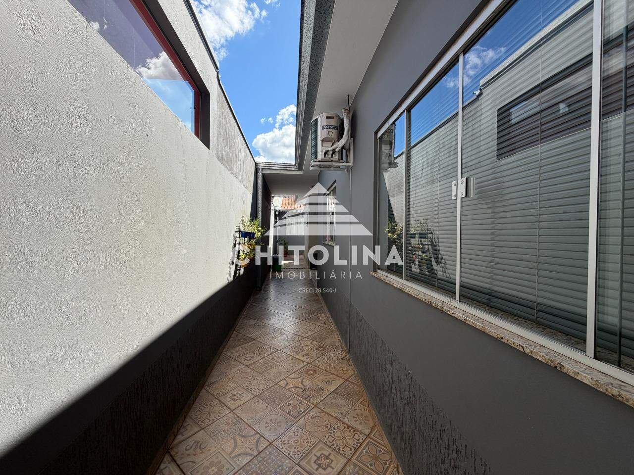 A área social conta com sala de TV e sala de jantar conjugadas, ambas climatizadas, integradas a uma cozinha com móveis planejados, oferecendo praticidade e charme ao ambiente. A casa possui ar-condicionado na sala e em dois quartos, garantindo conforto térmico em todos os espaços.